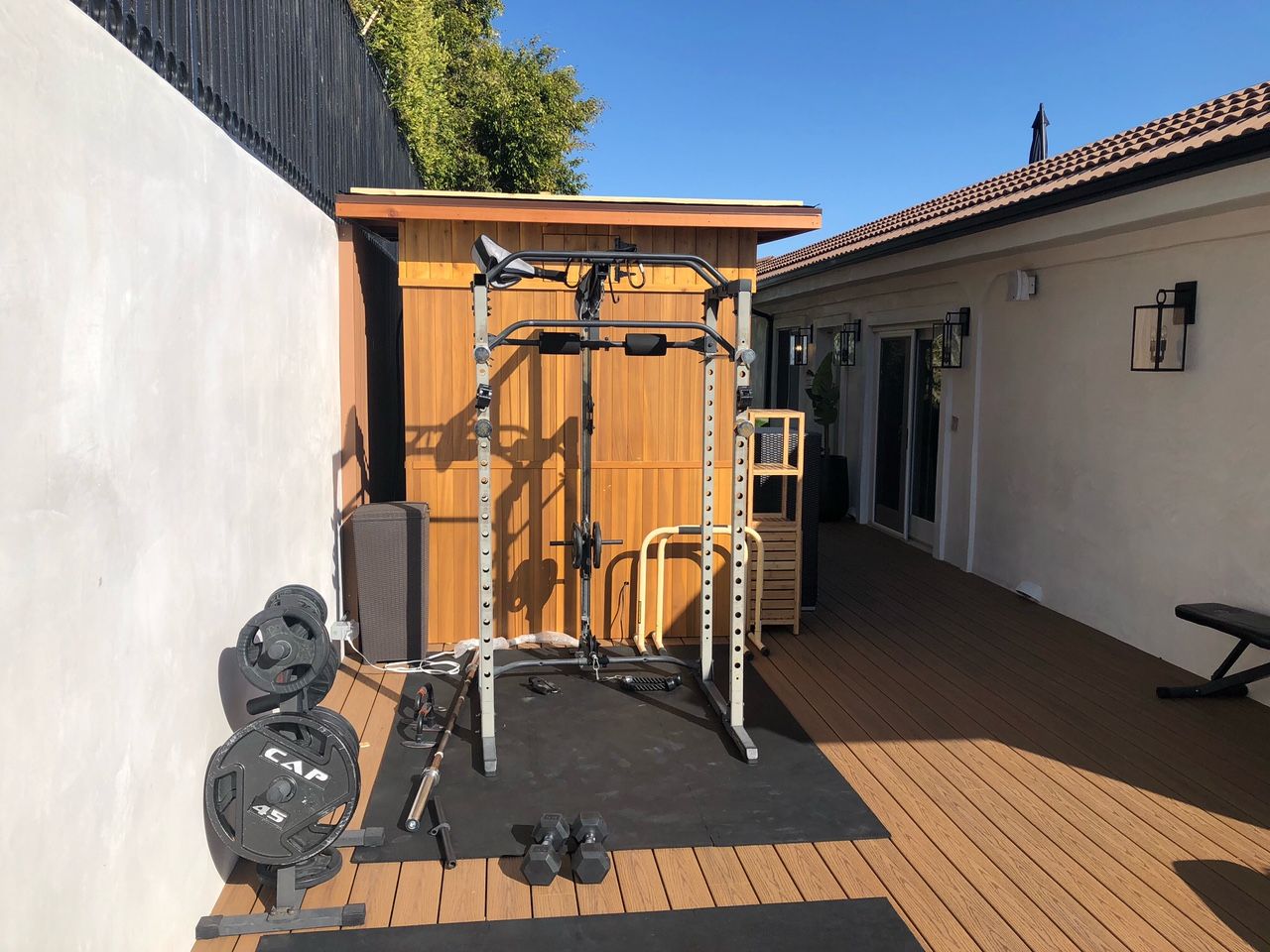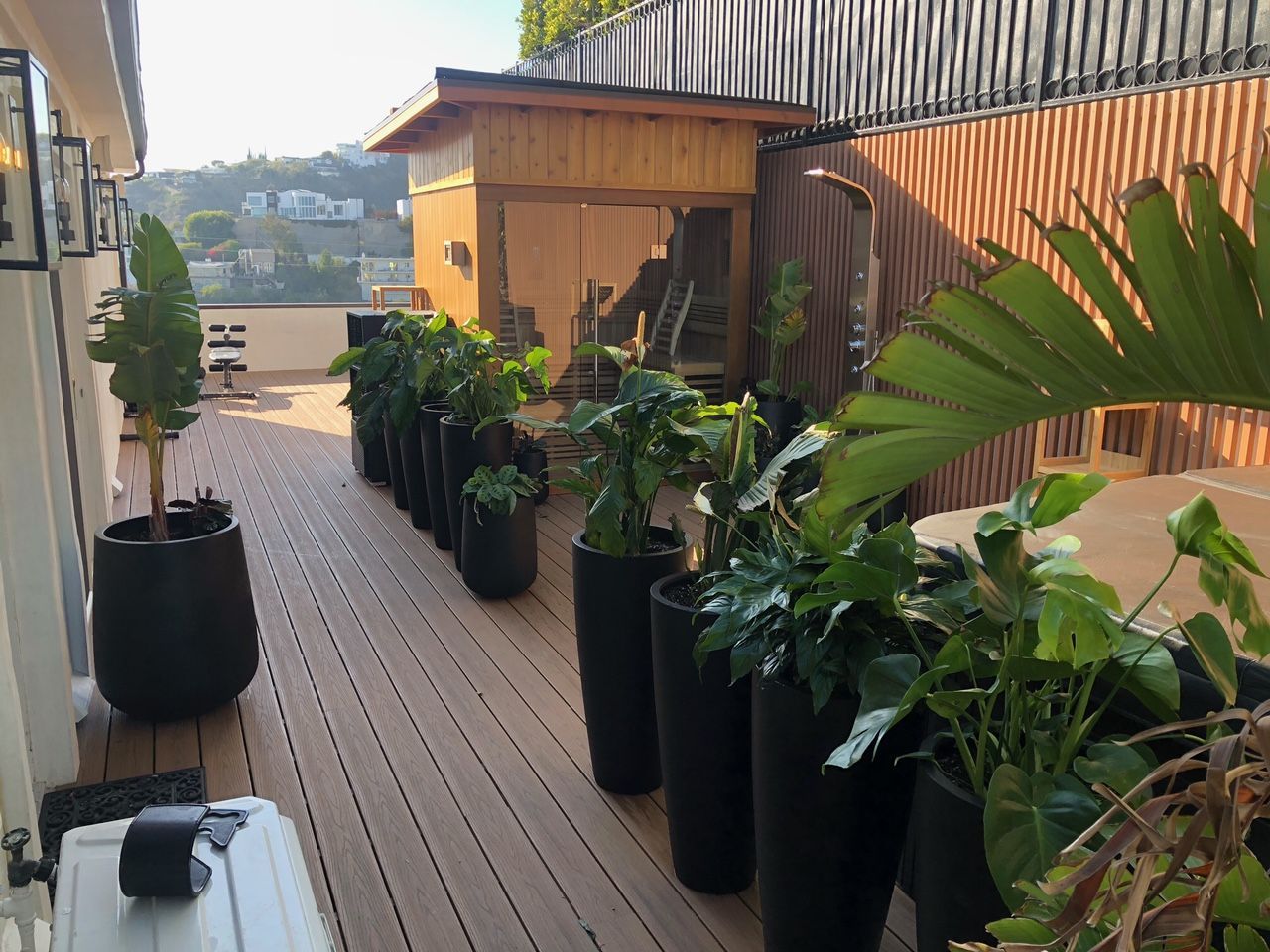 For our first project, we had the honor of taking on an exterior renovation of a classic Hollywood Hills Mission Revival home. Originally built for R&B legend Bill Withers in the 1960s, the home was overdue for a make-over. The client, a young man in social media advertising, endeavored to preserve much of Withers' legacy in the house while updating the features to reflect the clients' passion for health and fitness. To that end, we revitalized the exterior facade, installed new Ipe decking, and built out an entire health & wellness area of the property, including a Nordic sauna, cold plunge tub, and outdoor workout area. We also prepared a upper roof deck with enviable 270 degree city views, for entertaining our clients guests.